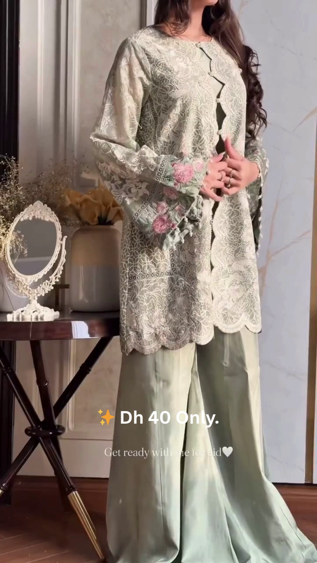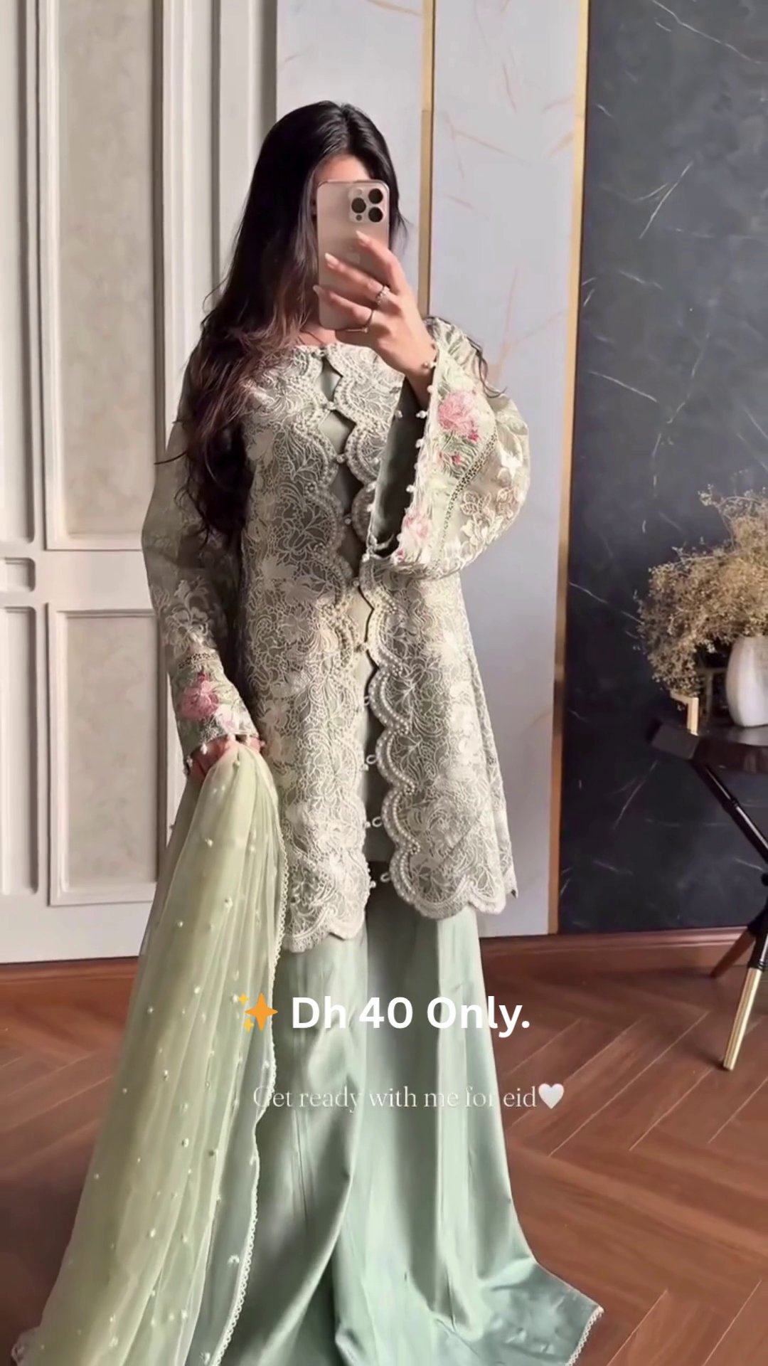 ✨ Pastel Gold Embroidered Long Suit – Dh 45 Only