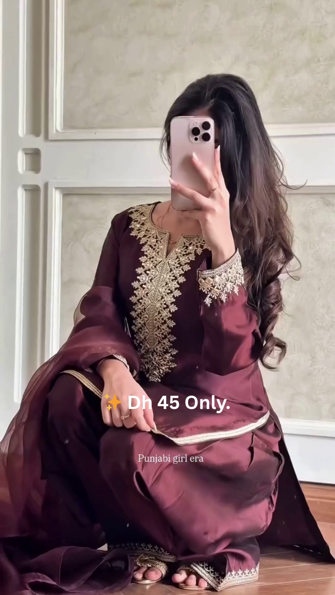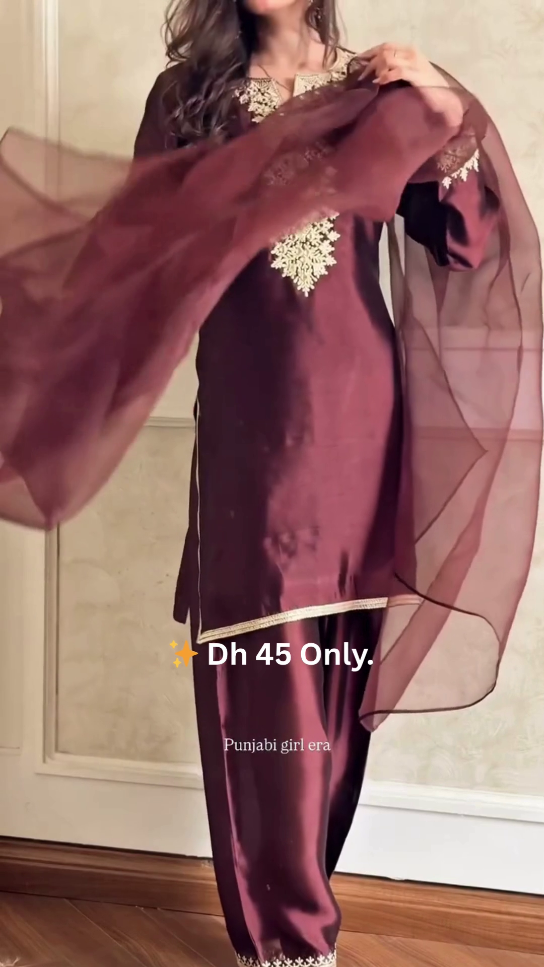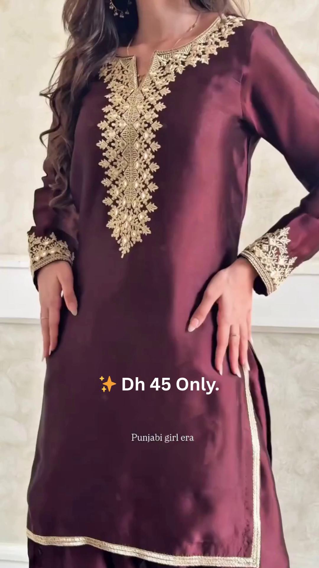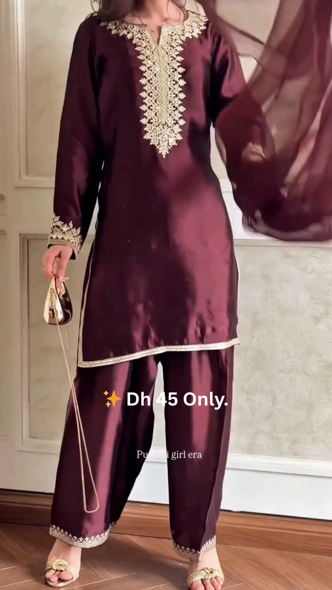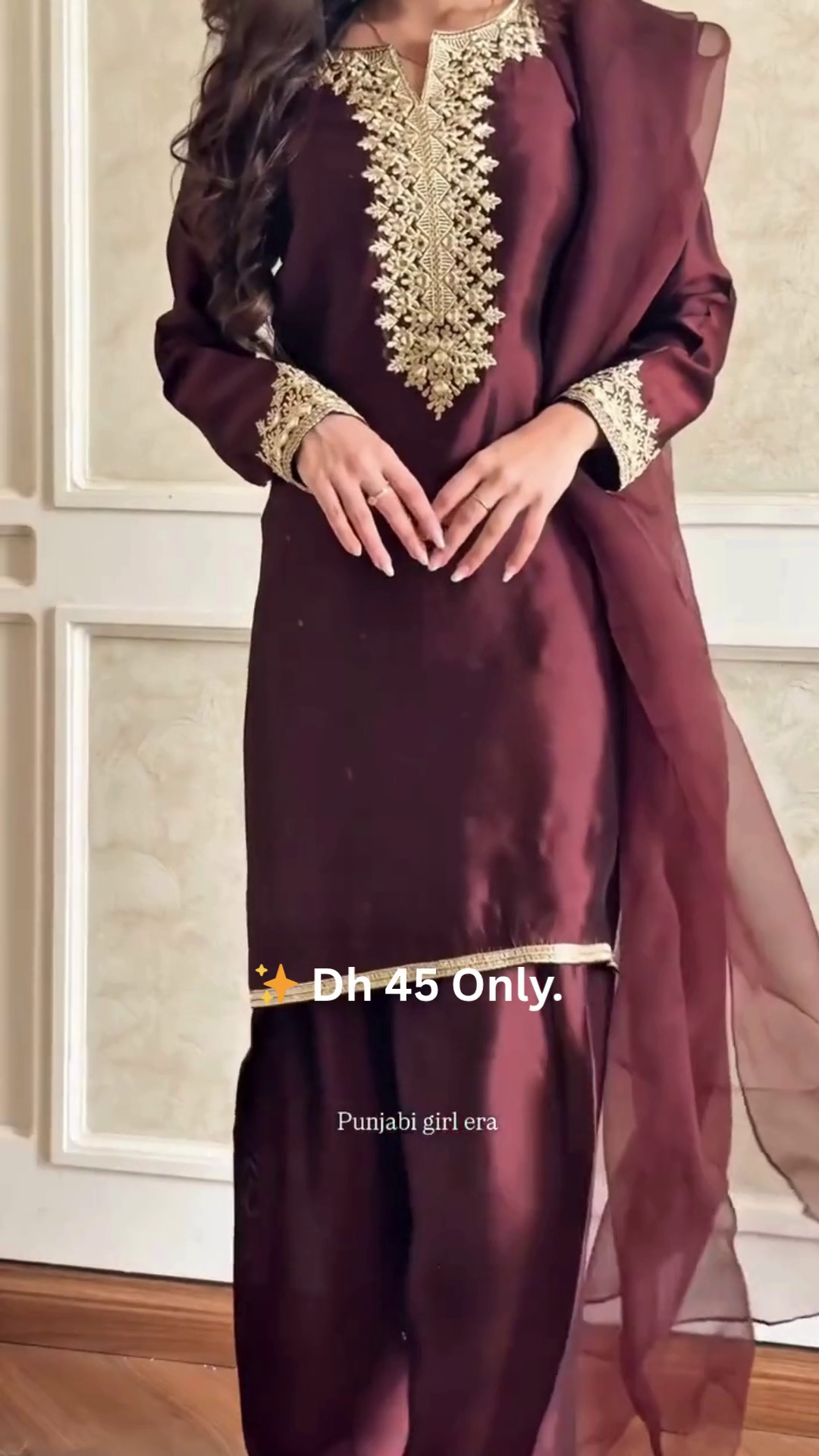 / 👑 Maroon Silk Suit with Golden Embroidery – Dh 45 Only
