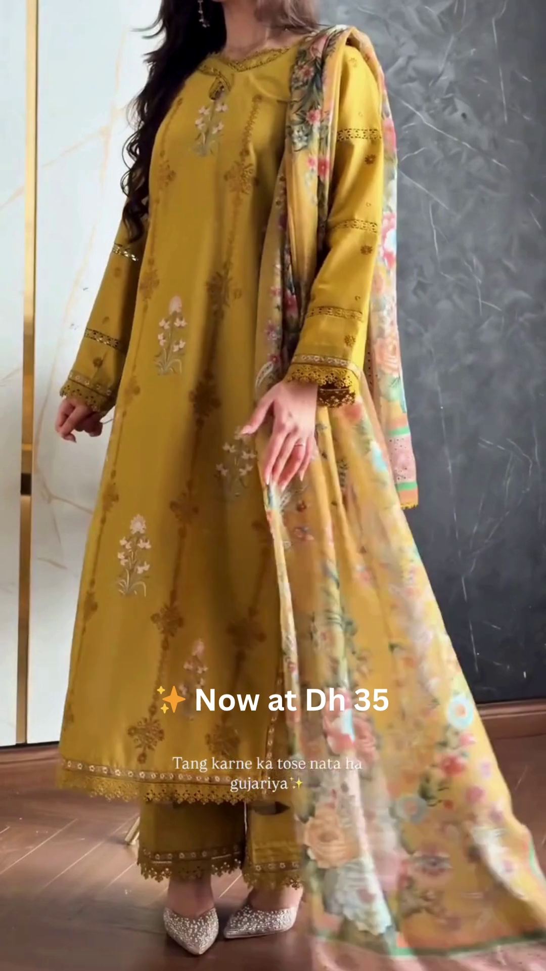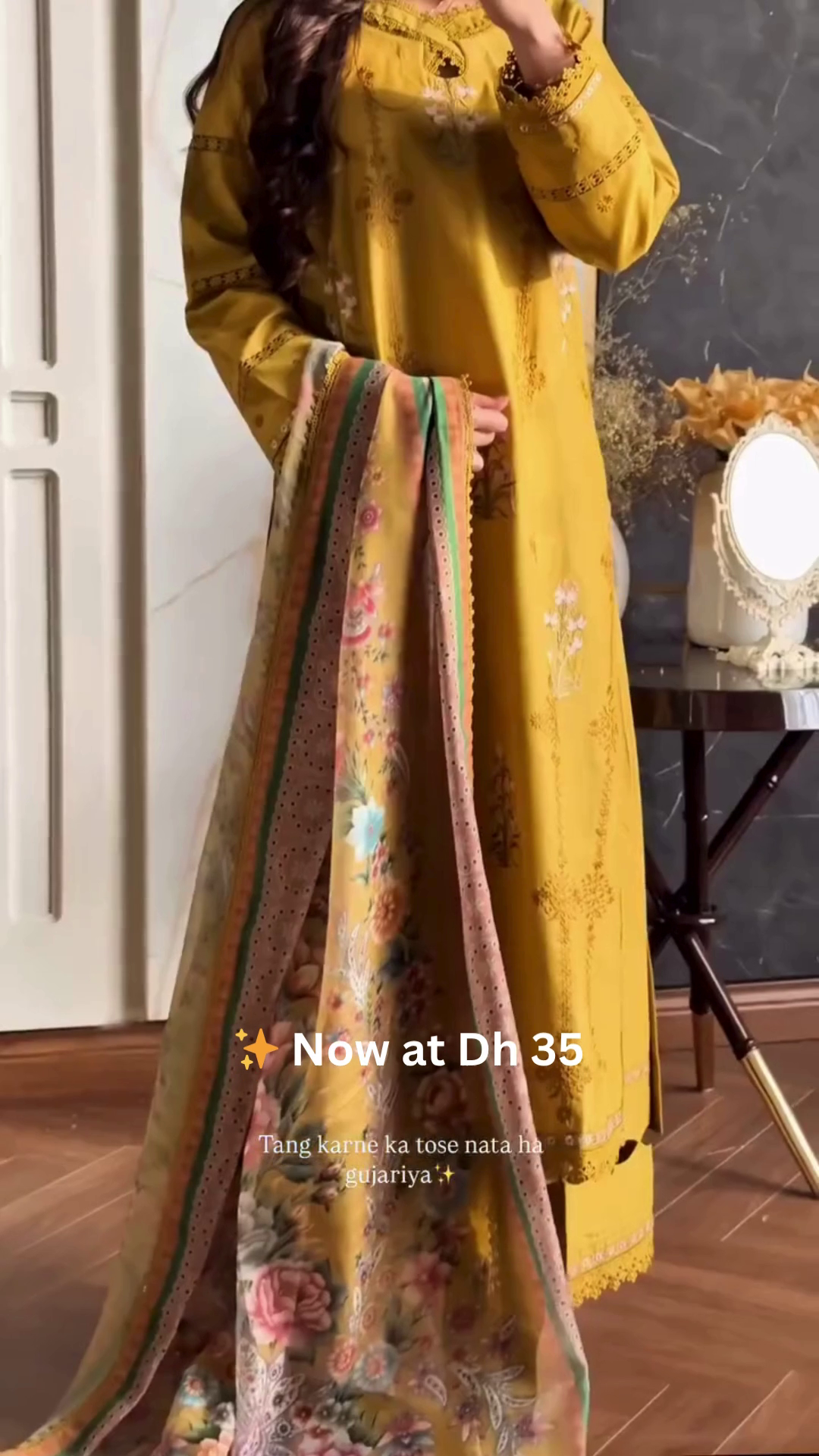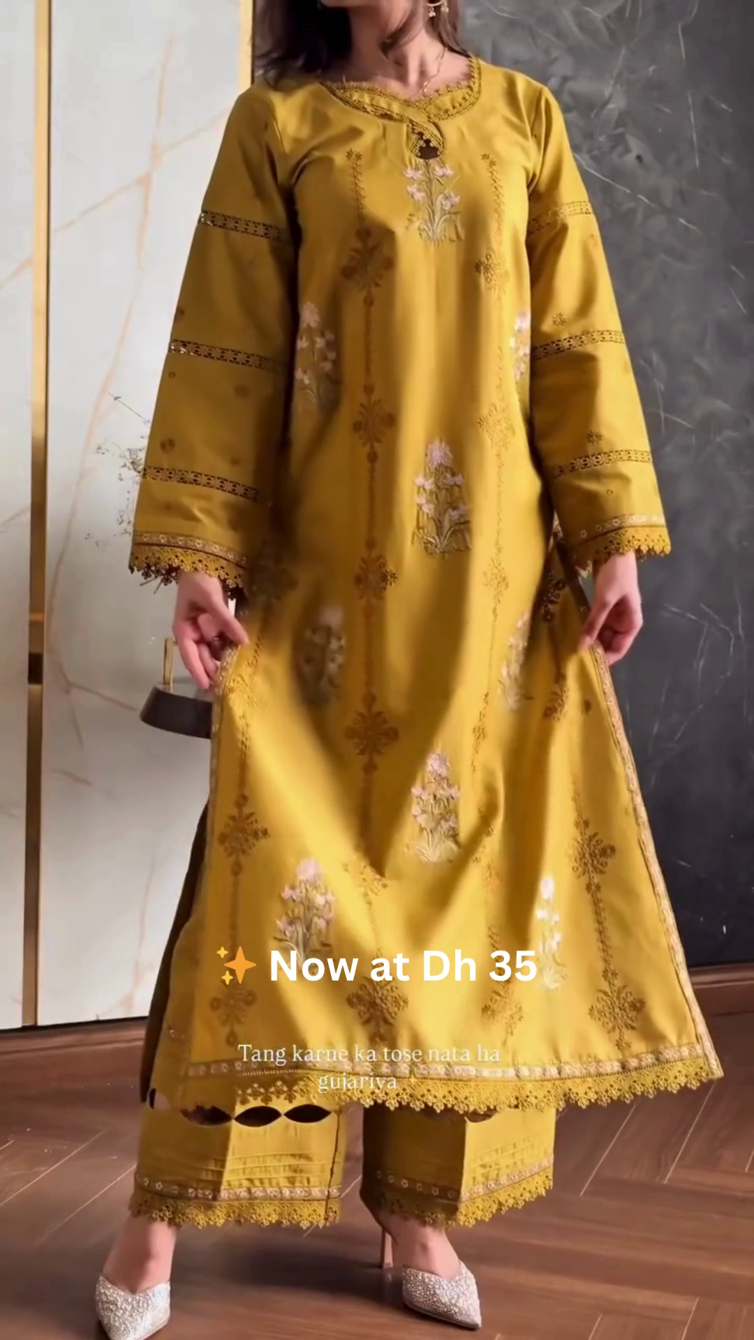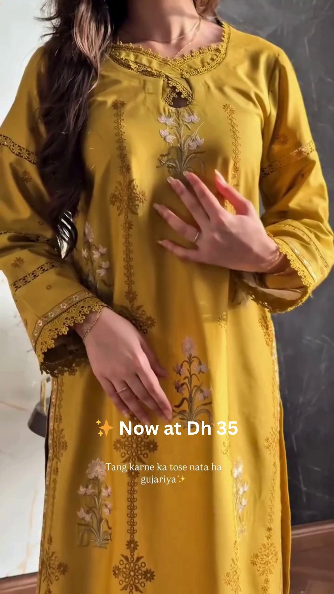 ✨ Pastel Gold Embroidered Long Suit – Dh 45 Only